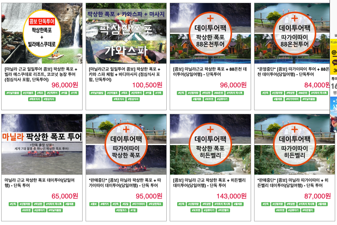 투어파이브 사이트에서 판매하는 마닐라 팍상한 연관 투어 투어파이브 홈페이지에서는 다양한 팍상한 연관 상품들을 판매하고 있어요.